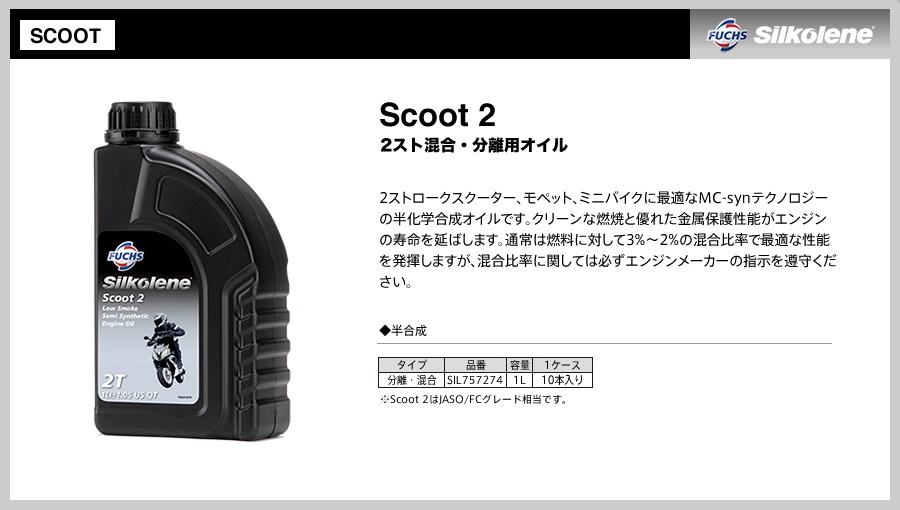 Silkolene シルコリン Scoot Sport2 Sil988582 1l 2スト混合 分離用オイル Fuchs フックス Sil757298 エムライン 通販 Yahoo ショッピング